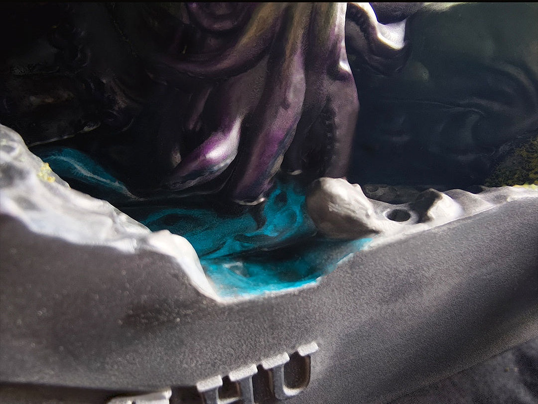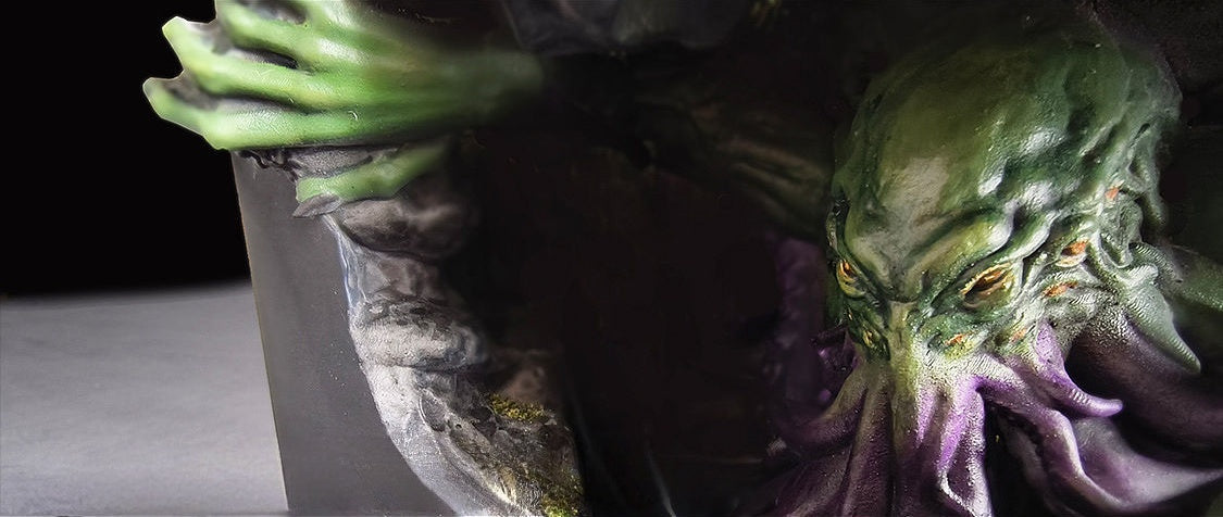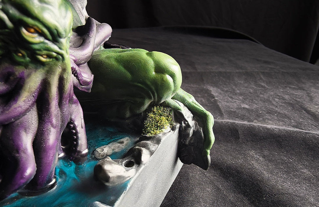 Cthulhu Devotion Incense is a scene-based aroma lamp that combines sculptural display with incense functionality.